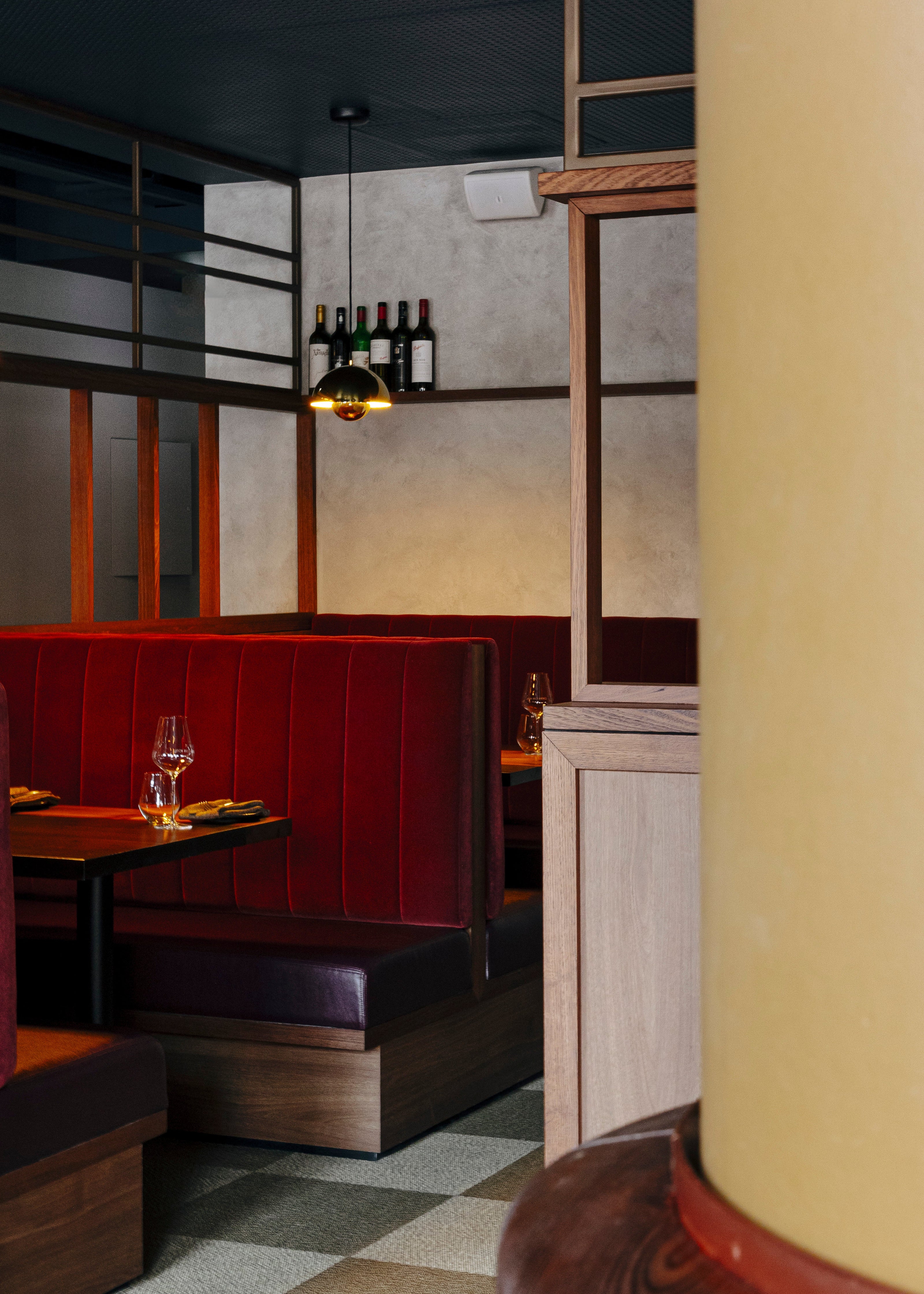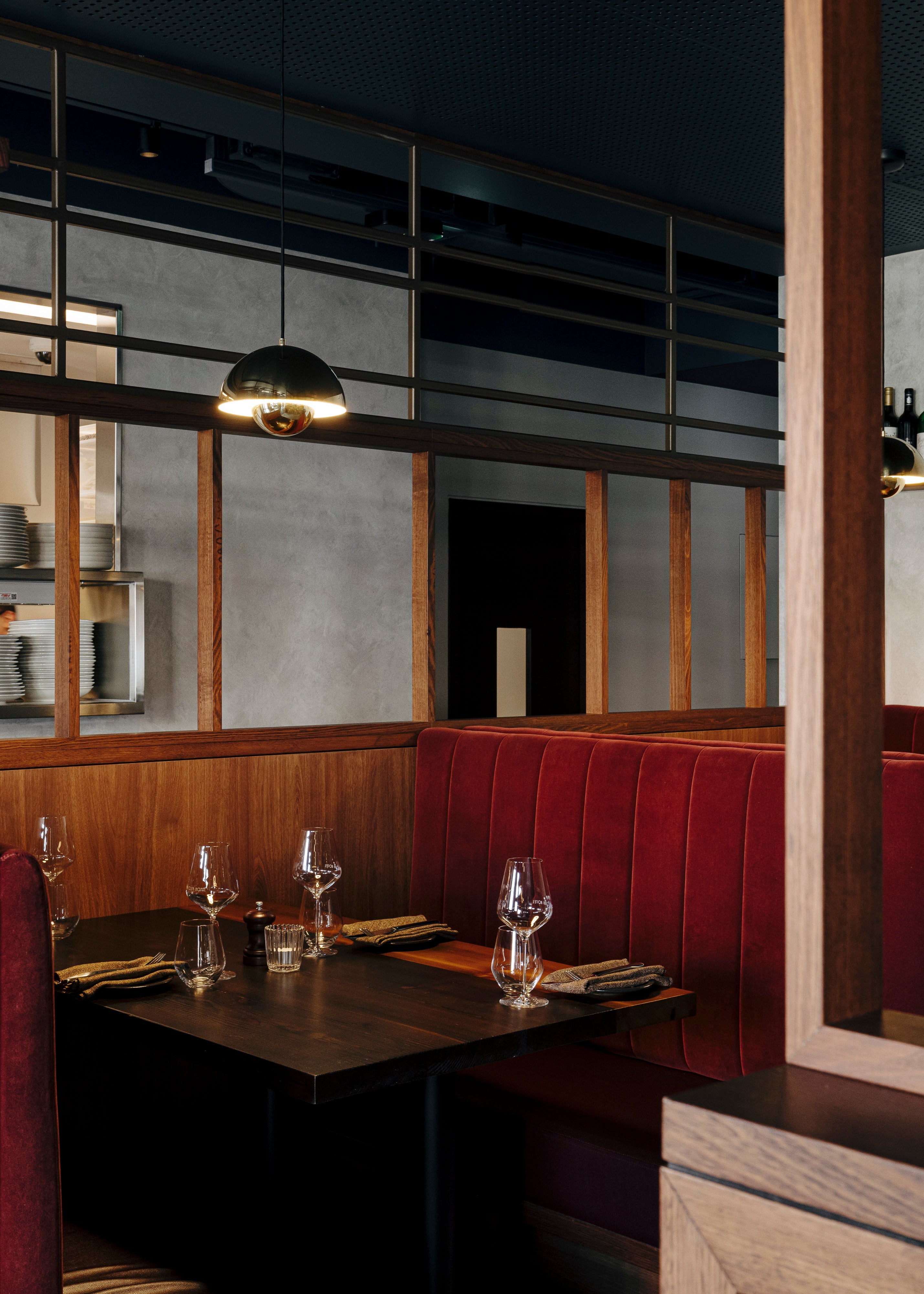 Luxe booth style seating for those who are a little fancy (and/or have a bad back). Grab a spot for your business meeting, family dinner, or book the whole space for 15 of your friends.